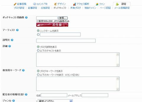 [設定]-[ポッドキャスト]で、iTunesStore登録用のボッドキャストのプロ フィールデータを作成します。