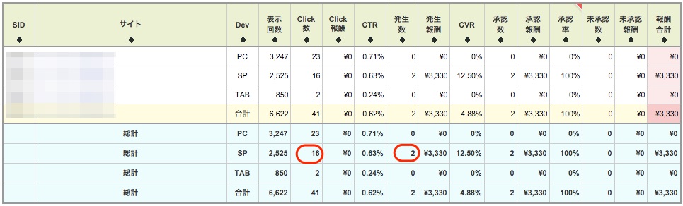 私のアフィリエイトサイトの一つですが、そのサイトでの反応率の高さがわかります。