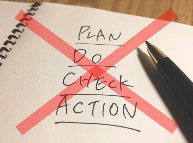 PDCAの生い立ちは調べていないのでなんとも言えませんが、少なくとも実際に行動した上で、その結果から生み出された手法ではないような気がします。